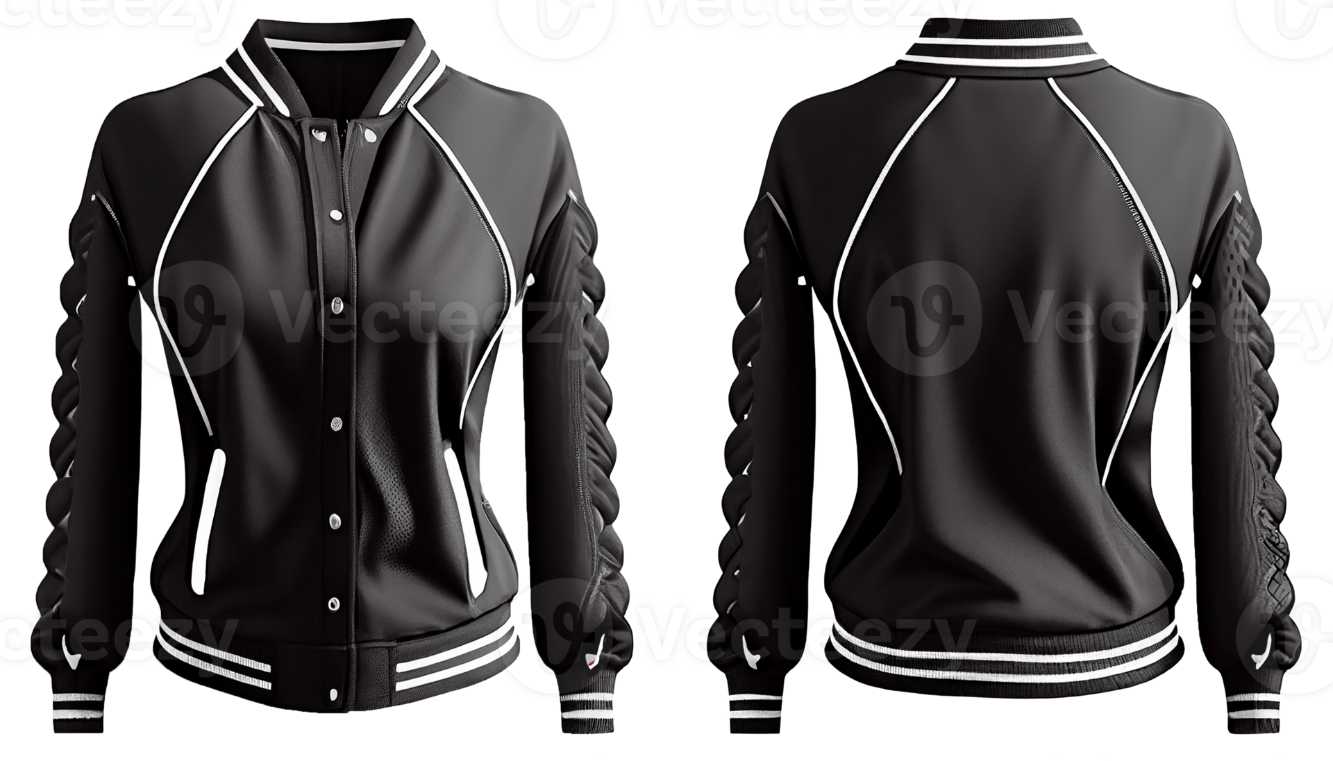 Baseball jacket for ladies long sleeve, print mockup, 3d render, Front and back, copy space