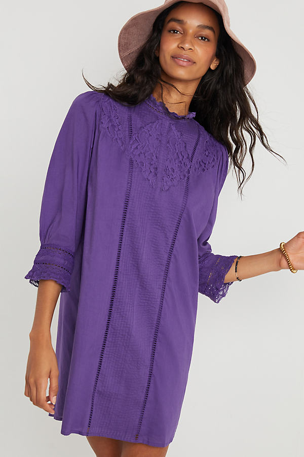 Lavender Embroidered Linen Tunic Dress
