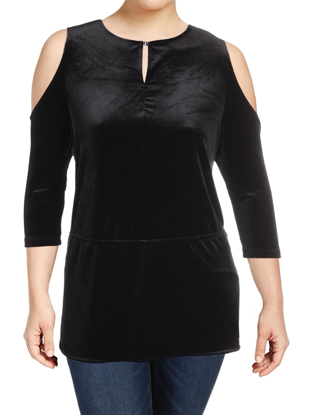 Calvin Klein Velvet Cold-Shoulder Top ($31) ❤ liked on Polyvore featuring tops, black, velvet top, calvin klein, cold shoulder … | Clothes design, Tops, Velvet tops